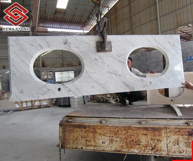 Top Vanity in marmo bianco all'ingrosso con doppi lavandini per il bagno