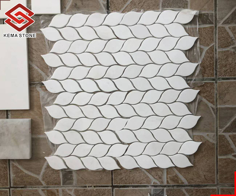 Greek Thassos Marble Mosaic Tile Waterjet Polished Natural White with Leaf Design Kitchen Backsplash and Bathroom Wall Tiles