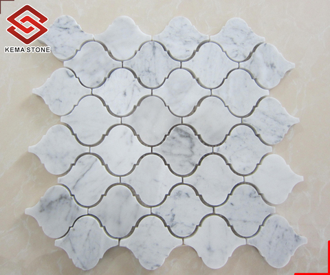 Polished Bianco Carrara Marble Lantern Mosaic Tiles Waterjet Cut Natural White Stone for Hotel Kitchen Bathroom Wall Decor