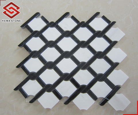 3D Waterjet Rhombus Stone Mosaic Polished Black Thassos White Marble Weave Tile Knitting for Bathroom Kitchen Wall Mosaics
