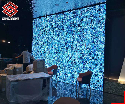 Backlit Semi Precious Stone Natural Blue Agate Wall Panel