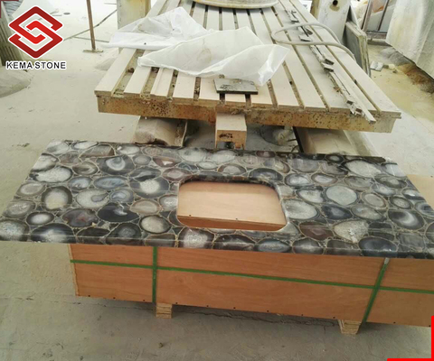 Prefab Polished Natural Stone Grey Agate Counter Top & Backsplash Panel Kitchen Island Sink Cutout for Kitchen & Bathroom