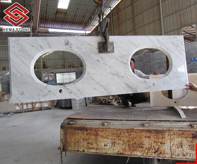 OEM prefabrik Premium İtalyan banyo yüzey beyaz taş carco Carrara mermer Panel Vanity lavabo Tops lavabo sayaç tezgah